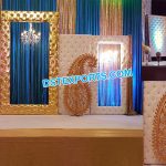 This stage set includes:- One Middle Leather Panel of 10 x 5 feet with fiber framing, Six Leather Tufted Panels of 8 x  6 feet high each with fiber framing on sides which are made of leather and small crystal, are fitted in it. There is a small fiber hanging frame that is made of fiber. In addition, We also provide Wedding Chairs/Wedding sofa sets as you can see in the picture.  A Customer can choose a variety of wedding sofas from our website. These Leather Panels backdrop can be used in any event such as on wedding, mehndi stage, party decoration, and on any other event for stage decoration purpose and always gives a gorgeous look.