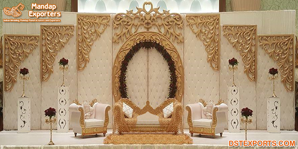DST EXPORTS are the best manufacturer and exporters of wedding leather tufted panel, wedding mandaps, stages, backdrop panels, and all other wedding decors items. DST EXPORTS manufacturer various types of Asian wedding leather tufted panel,  Wedding flower wall, Wedding leather high back sofa, Wedding backstage decoration, Leather wall panels for wedding stage, Marriage stage leather tufted panel, etc.