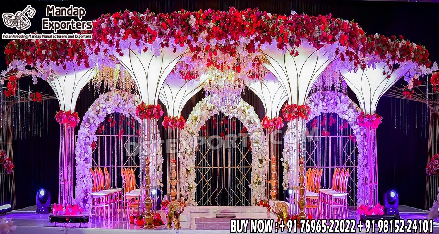 Wedding  is most important and awaited moment in everyone’s life. And the wedding is incomplete without the Seven promises i.e. PHERAS. To make your Pheras most incredible and unforgettable moment of your and every viewer’s life, MANDAP EXPORTERS  introducing most famous and hot selling mandap named as “Exclusive Designed Metal Palm Tree Wedding Mandap UK ”