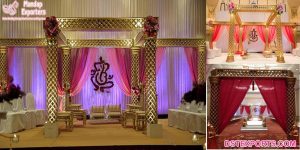 We will provide a full mandap setup (as shown in pic) – 6 fiber pillars or columns + 6 top fiber arcs, 6 Crowns or connectors to make the mandap structure, 2 pillars + 1 arc for making the welcome gate, 6 Small Fiber Pillars + 6 small fiber Statues (option available – Ganesha/Diyaladies/Flower-pots) for Walkway Decoration, Six mandap chairs or wedding sofa (option available–) for seating purpose on mandap ceremony, Backdrop curtains 10 x 30 feet, Havan Kund/firebox, Carpet for mandap and walkway area. A customer can make stage also (an in 2nd pic)