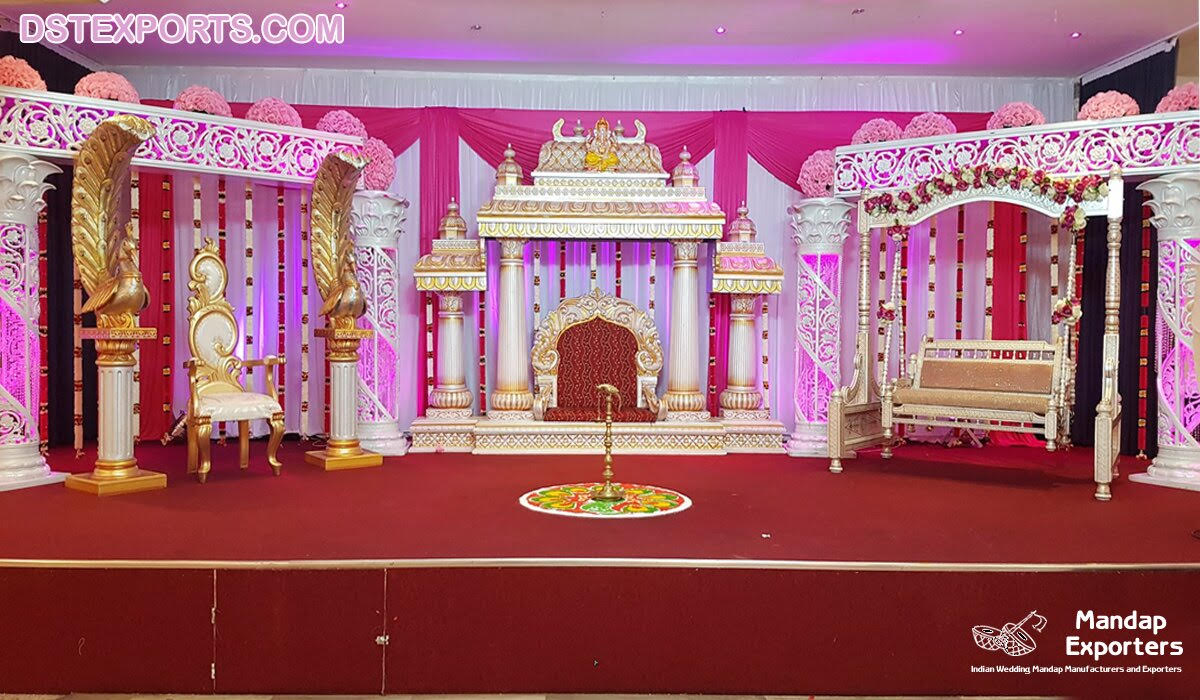 Grand Manavarai Design Wedding Mandap & Stage:- Here we are presenting our “Grand Manavarai Design Wedding Mandap & Stage” which is well designed and exported by DST EXPORTS INDIA. This is our Latest Wedding Mandap/Mandala/Mandapam which is originally MADE-IN-INDIA. This Mandap set is known for its look and uniquely designed “WEDDING MANAVARAI MANDAPAM”. This is an affordable Wedding Mandap provided by us at reasonable prices. This Indian Wedding Mandap is really very worthy because it can also make stage by using mandap accessories. This Grand Wedding Mandap Setup is made by using fiber material.