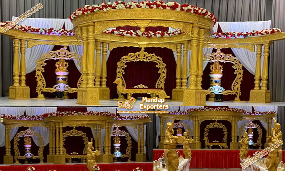 Indian Wedding Event Circular Mandap:- Wedding Mandap is an essential part of Indian Wedding Ceremonies. A wedding Mandap is a mandap (covered structure with pillars) temporarily erected for the purpose of an Indian wedding. The main wedding ceremonies take place under the mandap. This is a Latest Marriage Mandap Setup manufactured and well designed by DST-international. This Mandap is well known asĀ ā€œIndian Wedding Event Circular Mandapā€.