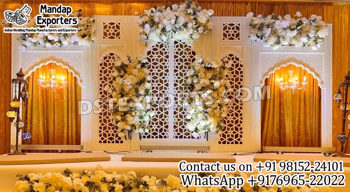 Elevate your event with our Luxury White Wooden Backdrop Panels for Wedding Stage. Crafted from premium wood with intricate carvings and floral accents, these panels create a royal and luxurious backdrop. Ideal for receptions, sangeet, engagements, and cultural functions, these panels not only blend beautifully with both traditional and modern themes but also offer unmatched versatility. Moreover, their timeless appeal and elegant design consistently elevate any event space. In addition, they are easy to install and customize, making them a practical choice. As a result, decorators and event planners across the globe prefer them for creating unforgettable, luxurious setups.