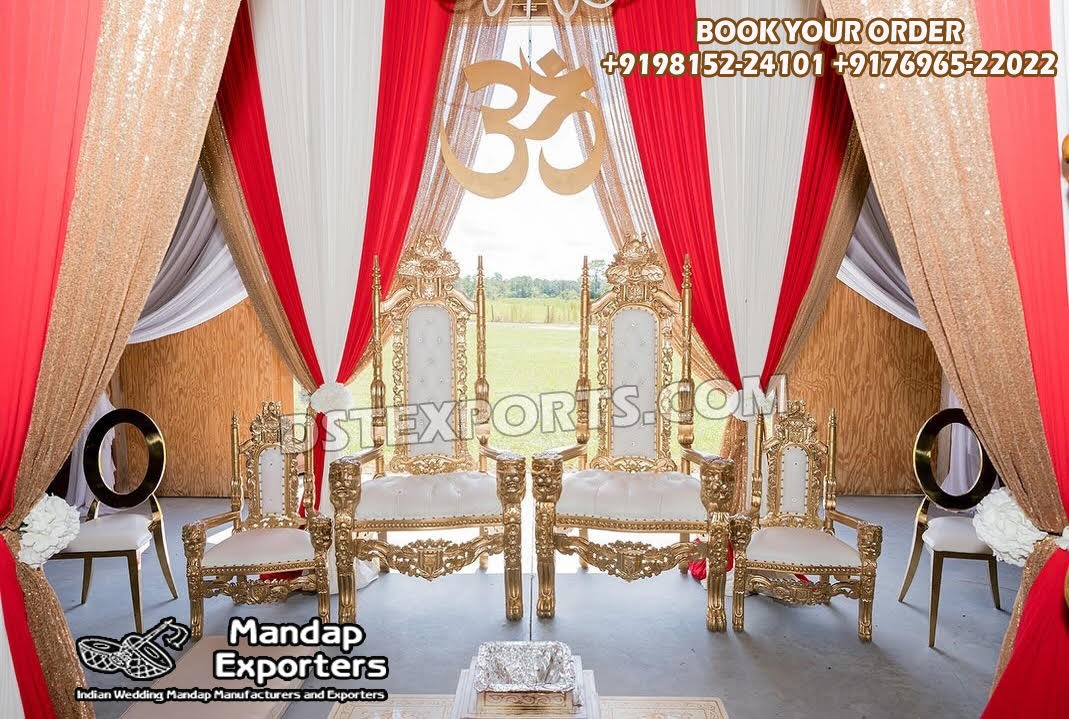 Maharaja Wedding Mandap Ceremony Chairs :- This is the Latest Designs of High Back Chairs Designed and Manufactured by DST EXPORTS. These Luxury Throne Chairs are known as Maharaja Wedding Mandap Ceremony Chairs. We are the original manufacturer of such Wedding Chairs. We are the best Wedding Furniture Makers in Punjab. Â
