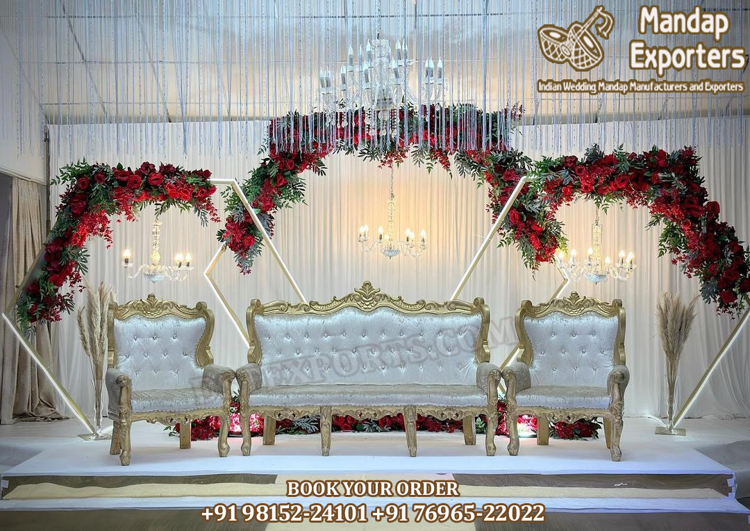On the point of view of colour, Our furniture comes with a wide range of colours like white, ivory, silver and gold, but we have various other colors in a stock. Customers can customize the colour of the wedding sofa set as per their demand, preferences, and like.
