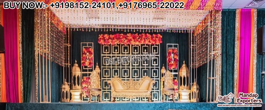 Mandap Exporters are the best manufacturer and exporters of wedding Stages and wedding Mandaps. We also manufacture backdrop panel, furniture, and all other wedding decoration items. Mandap Exporters manufactured many types of wedding stage setup such as Asian Muslim Reception Stage Decorations, Best Asian Wedding Stage Decoration Set, Latest Trend Wedding Stage Decorations, Elegance Asian Wedding Stage Decor Set, Royal English Wedding Stage Decorations, Ancient English Wedding Stage Decor Set, Arabian Style Wedding Stage Decoration, Exclusive Asian Wedding Stage Set, etc.