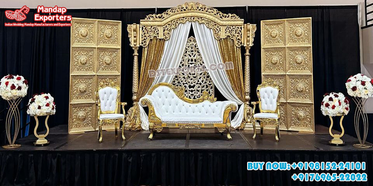 Muslim Wedding Ring Ceremony Stage Decoration:- Mandap Exporters is engaged in manufacturing Asian marriage Stages, This is one of the finest designs of the Grand Wedding Stage which is firstly MADE- IN- INDIA by us. We’ve a wide range of similar luxury decoration particulars for all types of marriage observances.