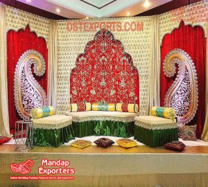 Muslim Wedding Walima Stage Arch Backdrops – The backdrop is a very important factor in the wedding as this is situated in the mandap behind the bride and the groom. Always pick the right backdrop as that has the ability to make or break your wedding decorations. Also, make sure that the backdrop goes with your mandap and the rest of the decor. If you need some decor inspiration DST Exports is the right place. We have all types of Beautiful Backdrops Curtains. We are engaged in manufacturing all types of backdrops so, now we are presenting our Latest Backdrops which is named Indian Wedding Arch Style Backdrop Curtains. We are offered these backdrops at the lowest prices.