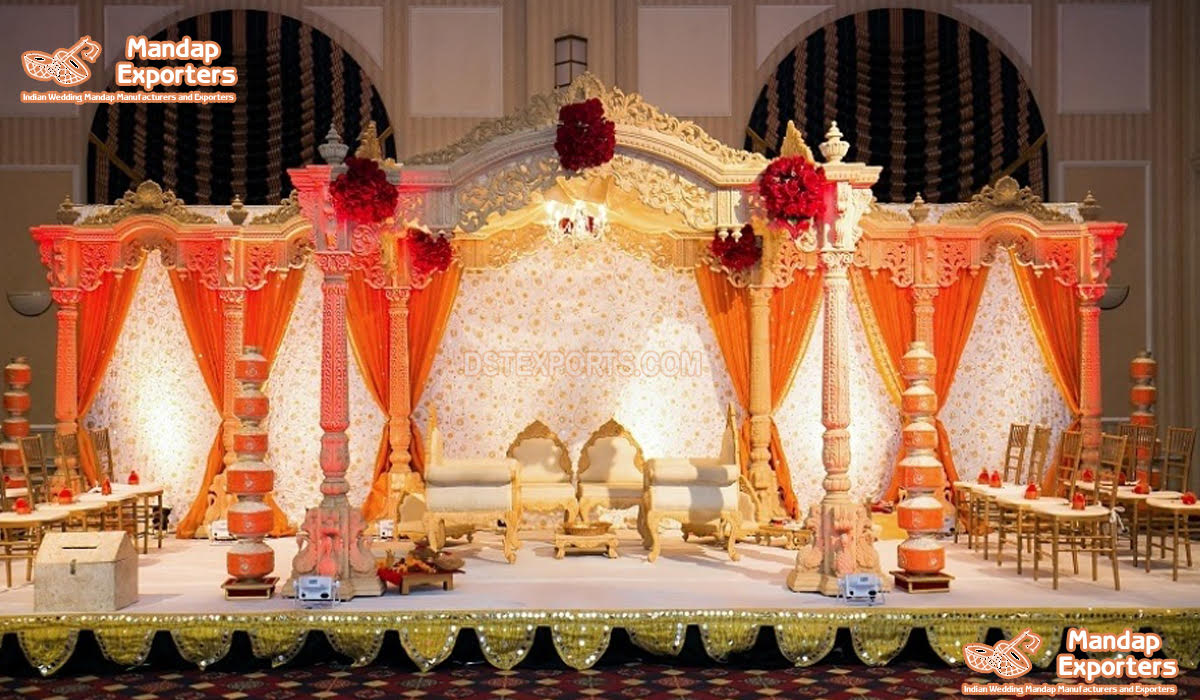 - This beautiful wedding wooden mandapam is made of Indian teak wood and polished by using good polyester polish.