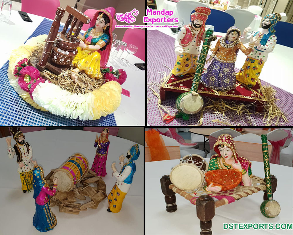 DST EXPORTS are the best manufacturers and exporters of wedding mandaps, stages, backdrop panels, and all another wedding decor items. Punjabi Culture Table Decoration Small Statues manufactured by DST EXPORTS. This is a very beautiful table centerpiece statues. These types of statues give a royal look at any event. These statues are used for Punjabi Wedding Decoration, mehndi decoration, wedding stage decoration, party decoration and on any other events. We are making these type of many products for wedding decoration. These statues are made of fiberglass with deco painted. These statues are provided in any color, any size and in any shape as per customer’s requirement.