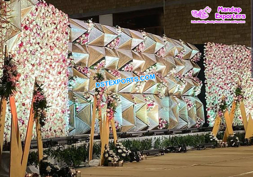 Stunning Wedding Diamond Stage Back Frames/Panels:– This is a Newly designed wedding Stage Back Frame Setup. This setup is well crafted and manufactured in “India” by DST EXPORTS. This setup is well known as Stunning Wedding Diamond Stage Back Frames/Panels. This Frame Setup looks really very Classy and Flawless. These Panels can be used on numerous occasions for instance reception, party, wedding and many more.
