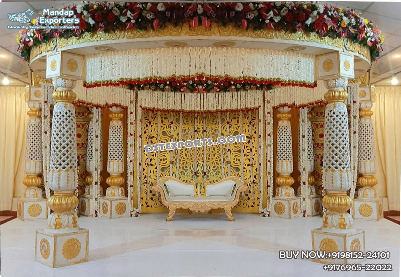 Tamil Wedding Ceremony Jali Carved Mandap:-Â Make your wedding event special and memorable Mandap Exporters We are introducing our n6new marriage mandap known as “Rajwada Wedding FRP Jali Pillar Mandap Decoration”. Then we will unveil the first Grand Wedding Mandap built in India by DST Exports. This mandap is also known as golden mandap